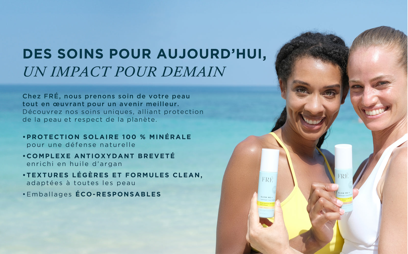 Nous avons pour mission de promouvoir une beauté saine portée par des ingrédients naturels respectueux de notre planète. FRE s'engage à donner 1% de ses revenus pour l'éducation des jeunes générations à une beauté holistique, positive et eco-responsable, ainsi qu'à la protection des océans et de la bio-diversité marine par la plantation de coraux.