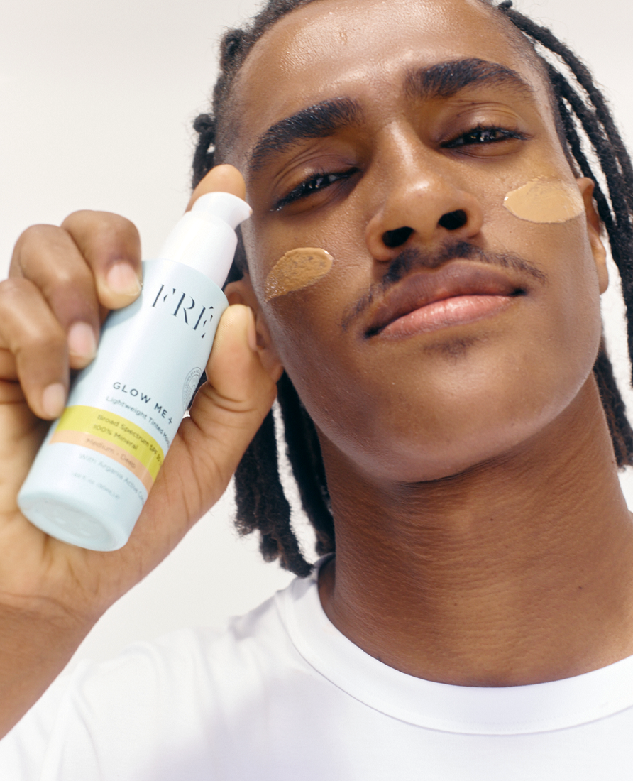 Découvrez GLOW ME+, l'hydratant teinté révolutionnaire et léger qui combine le Complexe Actif Argania exclusif de FRÉ, un écran solaire minéral SPF 30 et s'adapte à votre teint pour une couvrance lumineuse. Cette formule 3-en-1 est à la fois votre hydratant quotidien, un écran solaire résistant à l'eau et un fluide teinté lumineux. GLOW ME+ est non-comédogène et ne pique pas les yeux. De plus, nous utilisons de l'oxyde de zinc non nano comme filtre UV pour une protection minérale SPF 30. L'oxyde de zinc non nano offre une barrière efficace contre les UVA et UVB sans pénétrer la peau, ce qui maximise la sécurité et minimise les risques d'irritation, idéal pour tous les types de peau, y compris les plus sensibles Utilisez-le chaque matin pour une peau plus douce, plus lisse et plus saine.